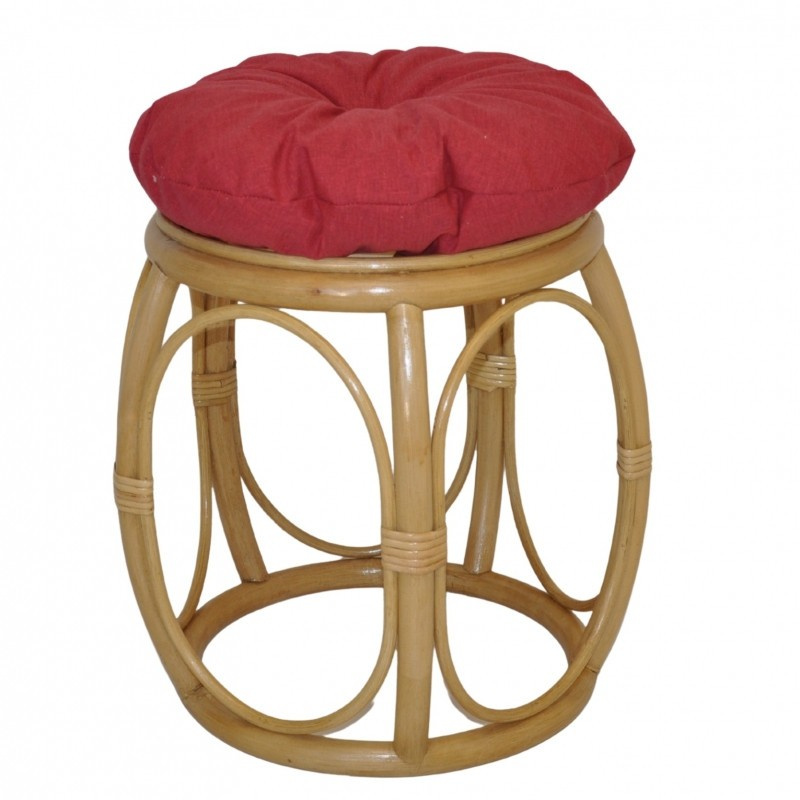 Ratanový nábytek - ratanová taburetka s polstrem. | Průměr taburetky v horní části je 35 cm. Výška taberetky je 38 cm. Nosnost taburetky je 110 kg. Barva ratanové konstrukce je medová. Polstr je vyrobený v České republice a je pratelný na 40oC. Materiál polstru je 100% bavlna, výplň polstru je drcený molitan.