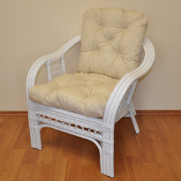 Ratanové křeslo Rio De Janeiro bílé - polstr béžový melír