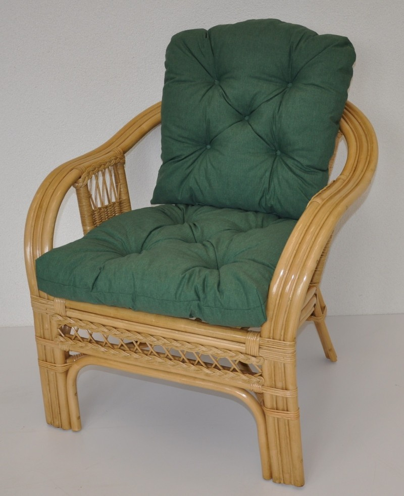 Ratanové křeslo Rio De Janeiro medové - polstr tmavě zelený melír