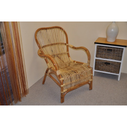 Ratanové křeslo Sidney vyrobené z přírodního ratanu semambo. | Křeslo Sidney je vyrobeno z neloupaného přírodního ratanu semambo. Tento materiál se vyznačuje vysokou pevností, odolností a stálostí. Křeslo je velice pohodlné díky pečlivě promyšlené anatomické konstrukci. Barva ratanové konstrukce je přírodní. Velikost křesla je 65x80x85 cm, nosnost křesla je 125 kg Výška sedu křesla je příjemných 38 cm. Křeslo Sidney vás překvapí tím, jak je pohodlné i bez použití polstrů. Je to díky anatomicky tvarovanému výpletu křesla. Nic však nebrání tomu, použít na křeslu dekorativní deku nebo kůže, jak je zachyceno na druhé fotografii výrobku.