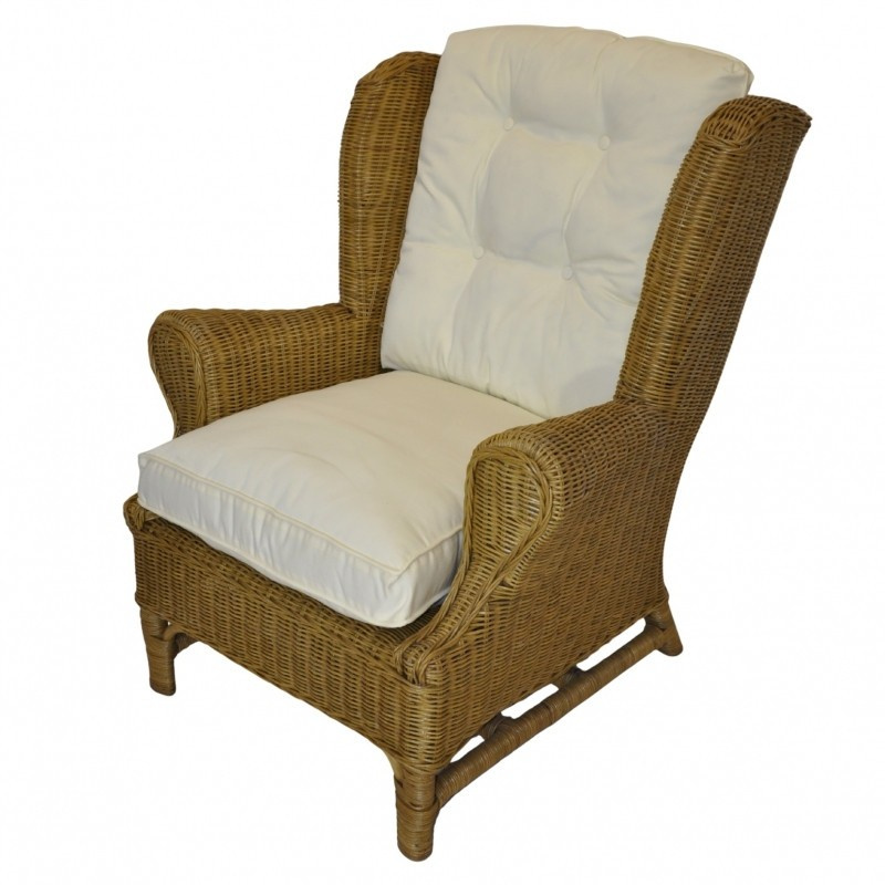 Ratanové křeslo ušák medové polstr bílý FL
