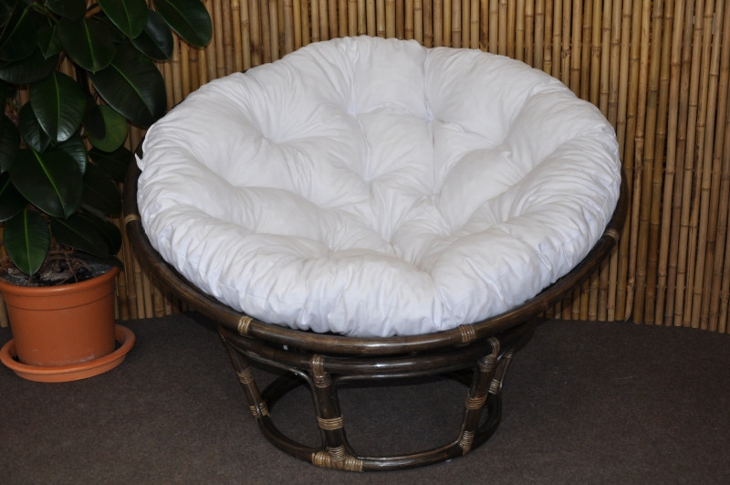 Ratanový nábytek - ratanové křeslo papasan je vyrobeno z přírodního ratanu s barvou ratanové konstrukce odpovídající fotografii výrobku, cena včetně bílého polstru vyrobeného v České republice | Barva ratanové konstrukce je hnědá. Průměr papasanu je 110 cm. Nosnost křesla je 110 kg. Součástí křesla papasan je kvalitní polstr vyrobený z kvalitní pevné potahové látky. Polstr na toto křeslo papasan je vyrobený v České republice. Polstr je vyrobený z kvalitní látky a vyznačuje se vysokou kvalitou zpracování. Polstry pro nás vyrábí firma AXIN Cuschions s.r.o., která zaměstnává výhradně místní vyučené švadleny z České republiky. Tímto způsobem se snažíme podporovat výrobu a zaměstnanost v naší republice. Náplň polstru drcený molitan a polstr lze prát ručně na 40o C.