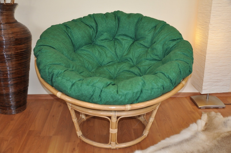 Ratanový papasan včetně polstru vyrobeného z velice kvalitní potahové látky. | Barva ratanové konstrukce je medová. Průměr papasanu v horní části je 115 cm - opravdu velký papasan Nosnost křesla papasan je 120 kg. Součástí křesla papasan je kvalitní polstr vyrobený z kvalitní pevné potahové látky. Polstr na toto křeslo papasan je vyrobený v České republice. Polstr jevyrobený z kvalitní látky a vyznačuje se vysokou kvalitou zpracování.Polstry pro nás vyrábí firma AXIN Cuschions s.r.o., která zaměstnává místní vyučené švadleny z České republiky. Tímto způsobem sesnažíme podporovat výrobu a zaměstnanost v naší republice. Náplň polstru drcený molitan a polstr lze prát ručně na 40o C. >>
