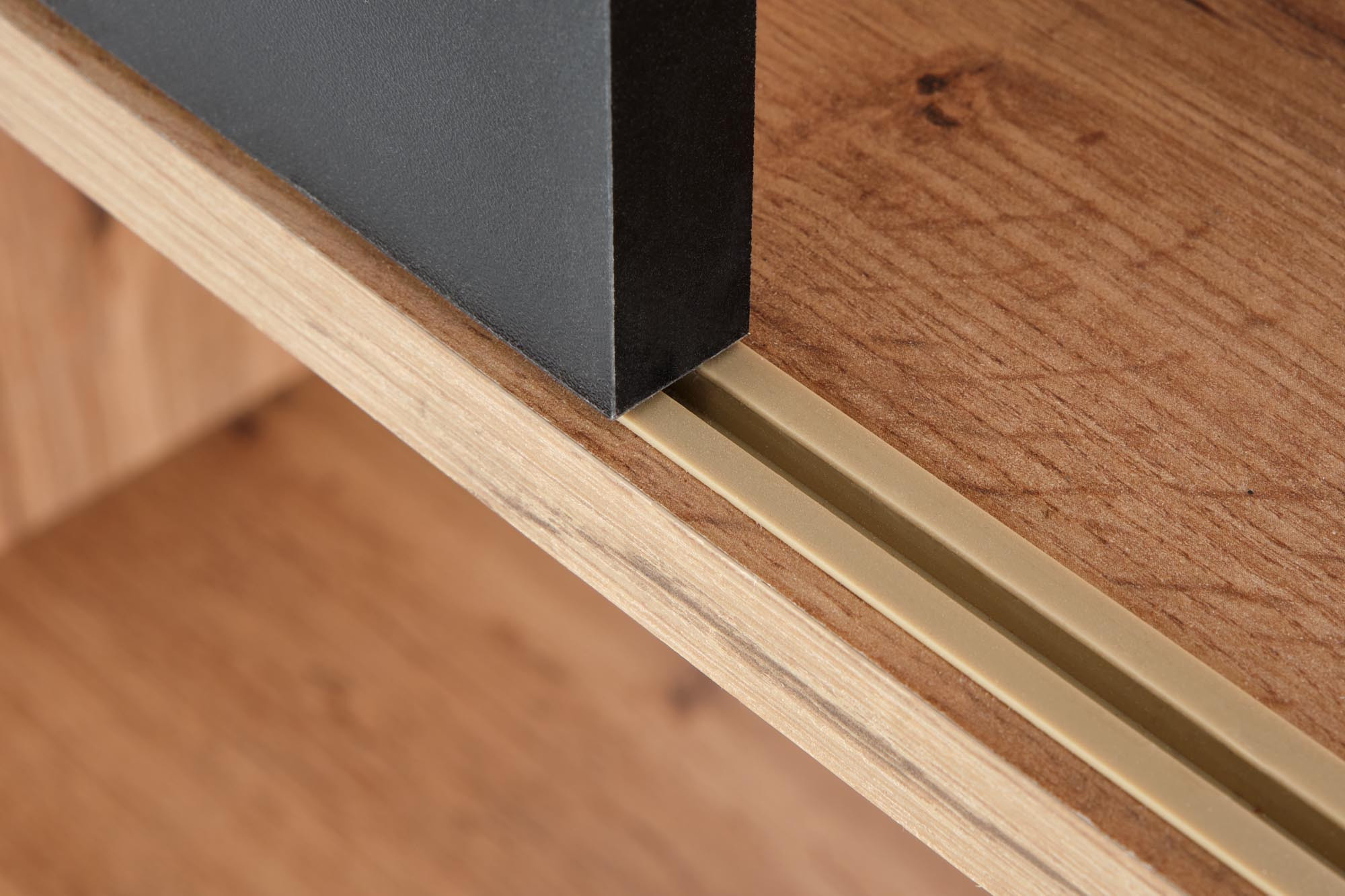 rozměry: 110/33/180 cm, posuvná čela, materiál: laminovaná nábytková deska, barvy: dub wotan / černá matná