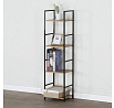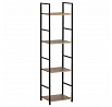 Odlehčený policový regál. Kostra vyrobena z kovových hranatých profilů černé barvy. Na police je použita MDF deska s povrchovou úpravou 3D folie v textuře dubu. Balení obsahuje sadu umožňující připevnění ke stěně.