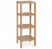 Regál z masivního bambusu nabízí čtyři prostorné police v přírodním odstínu, které jsou ideální pro organizaci a vystavení různých předmětů. Pevný rám a police z bambusového dřeva jsou navrženy pro dlouhou životnost a snadnou údržbu, přičemž přírodní textura materiálu dodává nábytku přirozený vzhled. Otevřená konstrukce umožňuje dobré větrání uložených věcí a zároveň usnadňuje přístup. Nosnost každé police je 12 kg, což zajišťuje stabilitu i při umístění těžších předmětů. Kompaktní rozměry regálu umožňují jeho využití v různých typech interiérů, od koupelen po obývací pokoje.