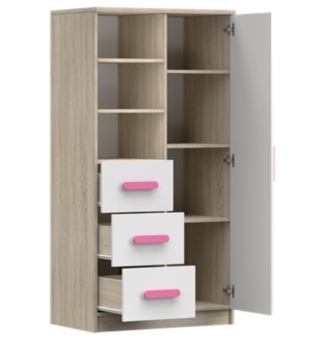 Moderní řada nábytku SMYK II potěší svou jednoduchostí a elegancí, kombinující klasickou šedou barvu korpusu a bílou barvou čel. Dalším prvkem, který odlišuje "Smyk II", jsou ozdobné dřevěné úchytky, které jsou k dispozici v různých barvách. Právě ty dodávají nábytku charakter a vytvářejí v dětském pokoji jedinečnou a jemnou atmosféru.