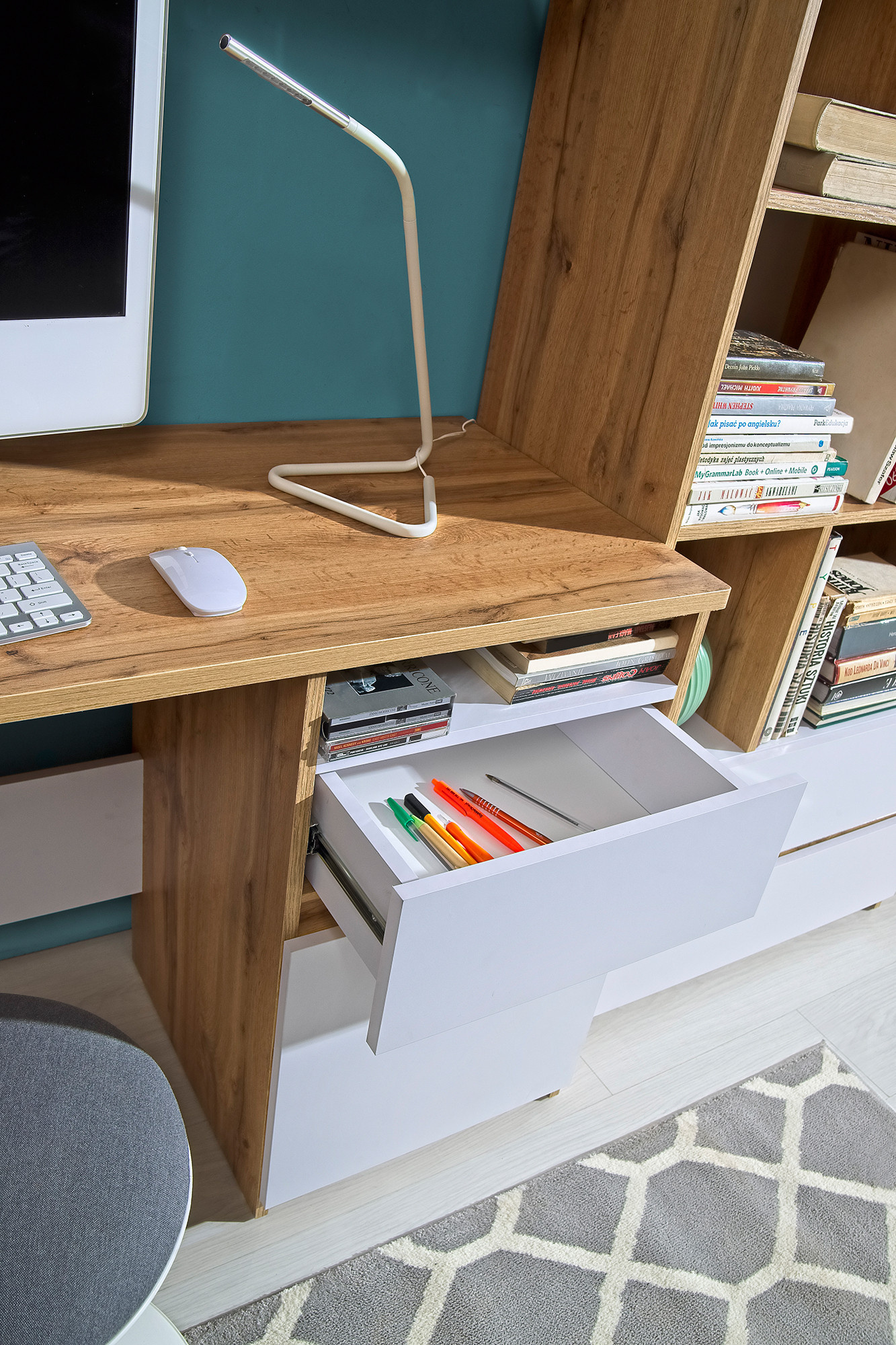 Nábytek ARCA je moderní nábytek určen do dětských a studentských pokojů. Nábytek je bezúchytový. Hrany jsou zakončeny ABS hranou. Šíře použitého materiálu - lamina je 16 a 22 mm, které je odolné proti poškrábání a vlhkosti. Šuplíky nábytku ARCA mají kuličkové pojezdy, které Vám zajistí lehké otevírání šuplíků. Nábytek se vyrábí ve dvou barevných provedeních, a to Bílá arktická a Bílá Arktická + Dub Wotan.