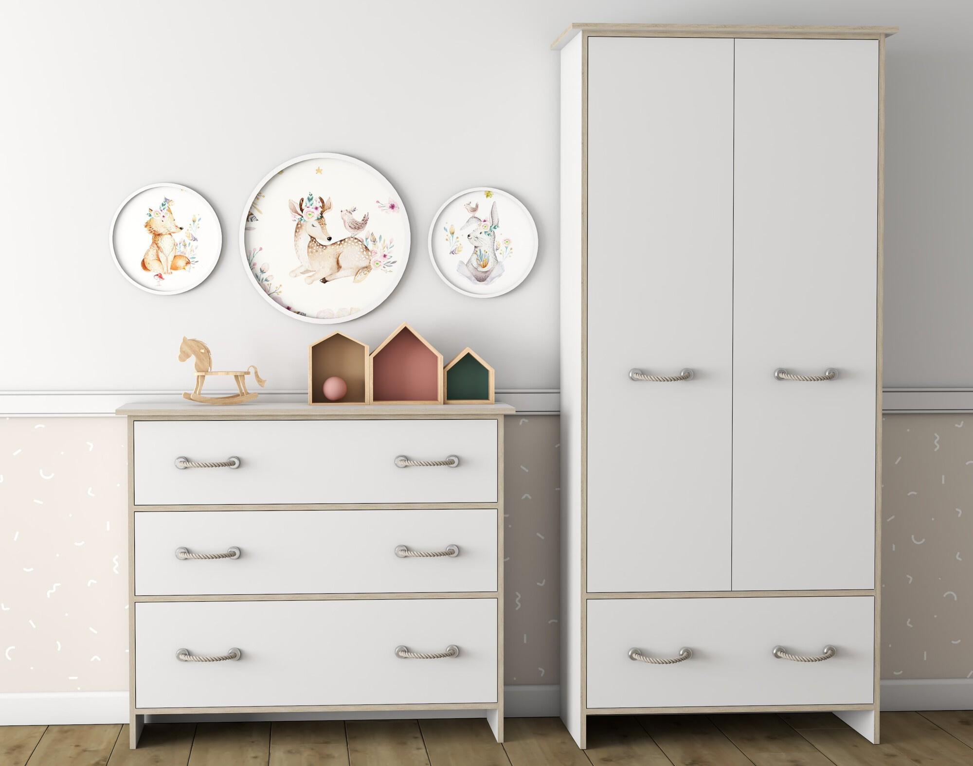 Systém COSMO je praktický nábytek do dětského pokoje, který okouzlí ozdobnými úchytkami v námořnickém stylu.