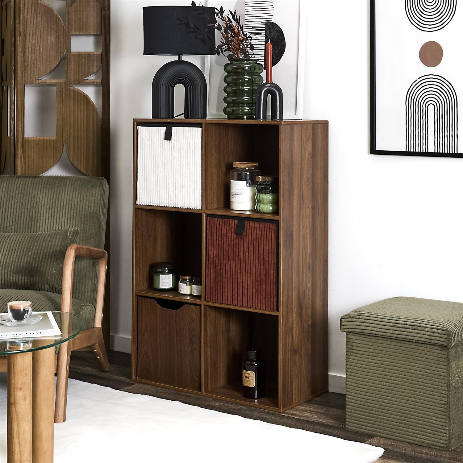 Regál vyrobený z MDF desky s dýhou imitující barvou i texturou dřevo ořechu. Regál Tiffany dokonale ladí a doplňuje kolekci nábytku stejného jména. Hmotnost regálu 15,8 kg Vyžaduje montáž