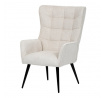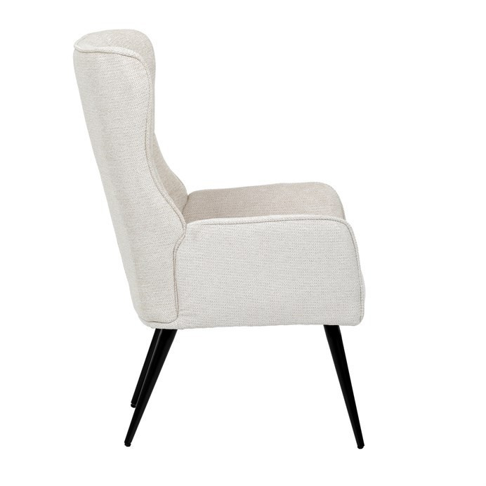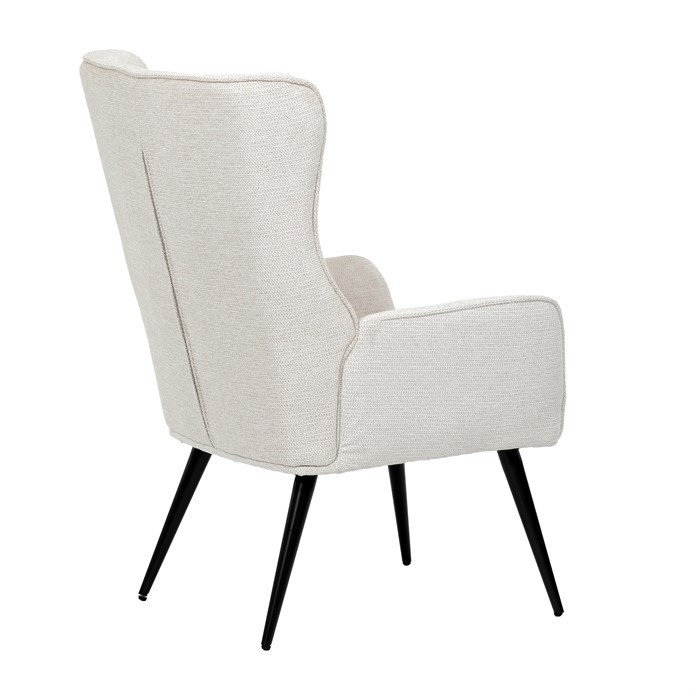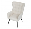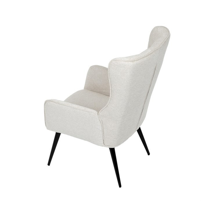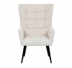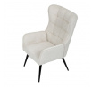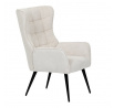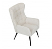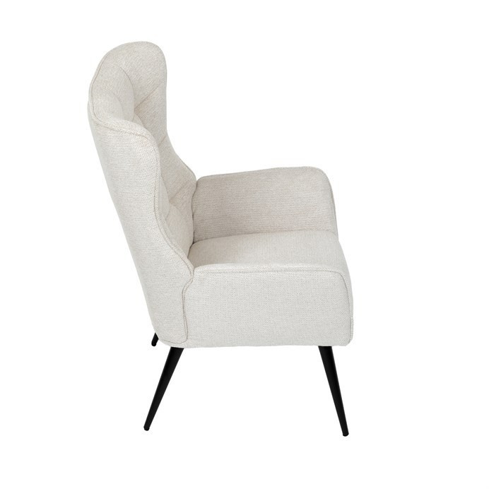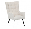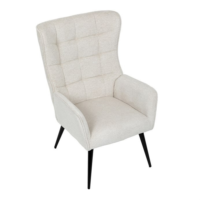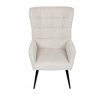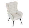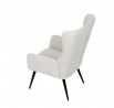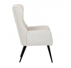 Křeslo s béžovým potahem z voděodolné látky kombinuje pohodlí s praktickým využitím v interiéru. Masivní nohy z kaučukovníku doplněné o kovové prvky zajišťují stabilitu a dlouhou životnost. Designové prošití na opěradle a sedáku podtrhuje moderní vzhled a zároveň přispívá k pevnosti čalounění. Područky jsou integrované do celkového tvaru křesla, což zvyšuje komfort při sezení. Díky použitým materiálům je křeslo vhodné pro každodenní relaxaci s důrazem na snadnou údržbu a odolnost vůči vlhkosti.