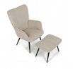 Relaxační křeslo s podnožkou v béžovém manšestru nabízí pohodlné posezení s dostatečnou oporou díky čalouněným područkám a vysokému opěradlu. Potah z manšestrové látky přináší příjemnou texturu a vizuální efekt, který podtrhuje útulný charakter křesla. Stabilní černé kovové nohy zajišťují pevnost a dlouhou životnost, přičemž taburet slouží jako praktický doplněk pro odpočinek nohou. Křeslo není otočné ani rozkládací, což podtrhuje jeho jednoduchost a funkčnost v interiéru. Díky svým rozměrům a designu je vhodné do obývacích pokojů i relaxačních zón.