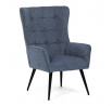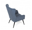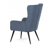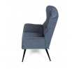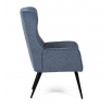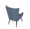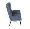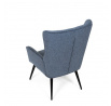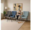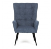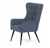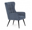 Křeslo s modrým potahem z voděodolné látky kombinuje pohodlí s praktickým využitím v interiéru. Pevná konstrukce nohou z kovu a masivního kaučukovníku zajišťuje stabilitu a dlouhou životnost. Opěradlo a sedák jsou vyplněné měkkou výplní a potažené látkou s designovým prošitím, které dodává křeslu moderní vzhled a zároveň podporuje komfort při sezení. Křeslo je vybaveno pevnými područi, které přispívají k ergonomii a pohodlí uživatele. Díky voděodolné úpravě potahu je snadné udržovat křeslo čisté a vhodné i do prostor s vyšší mírou vlhkosti.