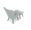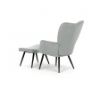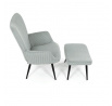 Relaxační křeslo s podnožkou v modrém manšestru nabízí pohodlné posezení díky měkkému čalounění a ergonomicky tvarovaným područkám. Pevné černé kovové nohy zajišťují stabilitu a dlouhou životnost. Manšestrová látka dodává křeslu příjemnou texturu a vizuální hloubku, která se hodí do moderních i klasických interiérů. Součástí je praktický taburet pro pohodlné opření nohou, který sdílí stejný design a materiál. Křeslo není otočné ani rozkládací, což podtrhuje jeho jednoduchost a funkčnost.