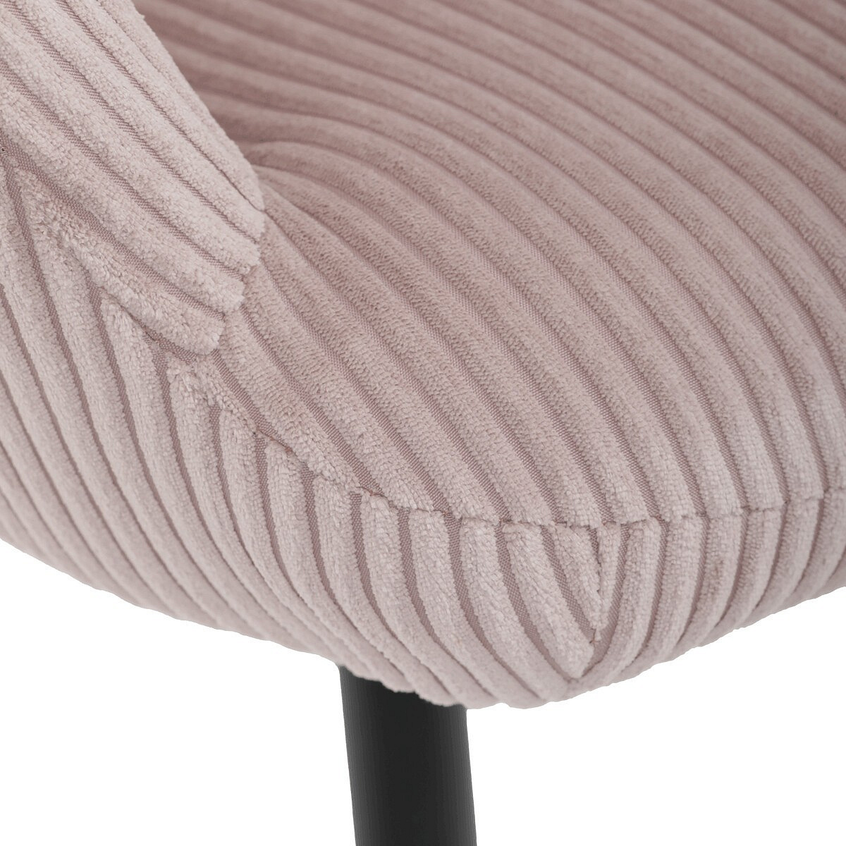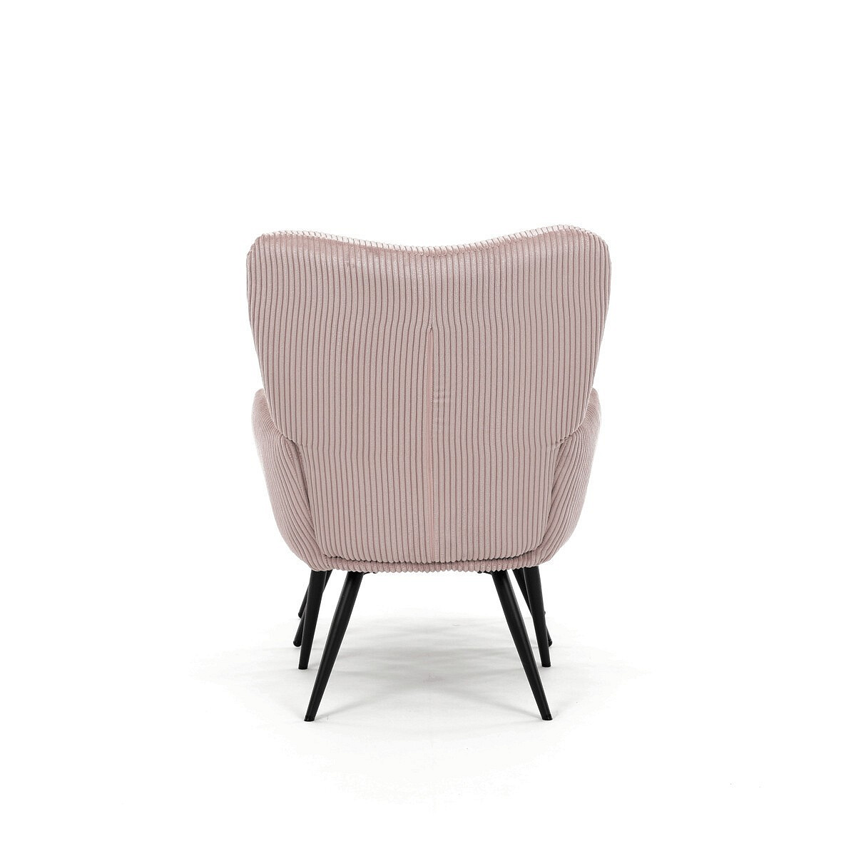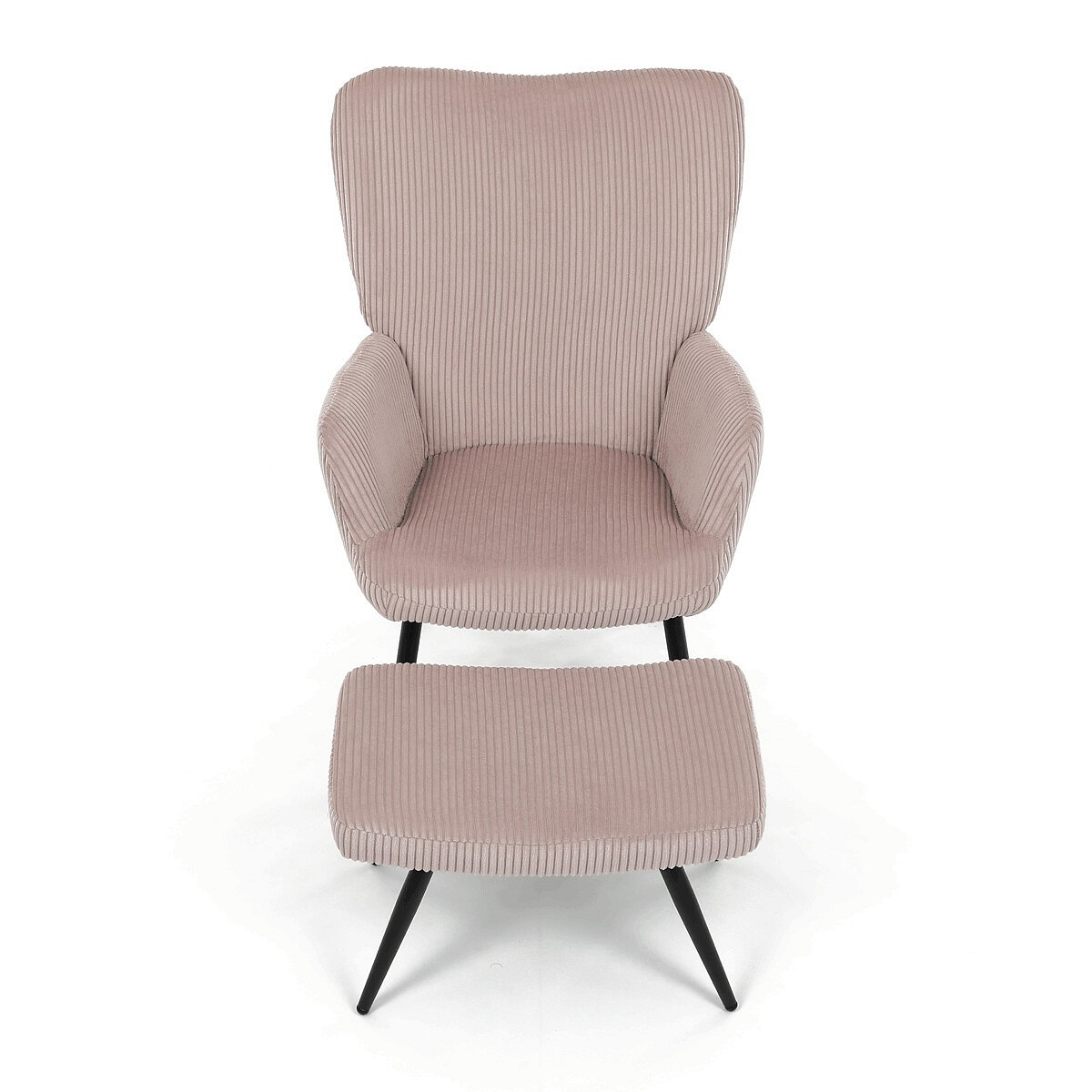 Relaxační křeslo s podnožkou v růžovém manšestru nabízí pohodlné posezení s dostatečnou oporou díky ergonomicky tvarovanému opěradlu a integrovaným područkám. Čalounění z manšestrové látky přináší příjemnou texturu a vizuální efekt, který zvýrazňuje jemné žebrování materiálu. Stabilní nohy z černého kovu zajišťují pevnost a dlouhou životnost, přičemž jejich úzký tvar dodává křeslu lehkost a moderní vzhled. Součástí je praktický taburet se stejným designem a materiálem, který umožňuje pohodlné opření nohou a doplňuje relaxační zážitek. Křeslo není otočné ani rozkládací, jeho rozměry a pevná konstrukce jsou navrženy pro stabilitu a komfort.
