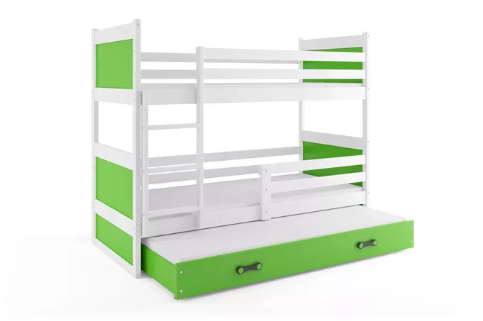 Dětská patrová postel RICO 3 s přistýlkou 90x200 cm, včetně matrací, Bílá/Zelená