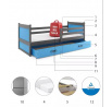 Dětská postel RICO 90x200 cm se šuplíkem, bez matrace, Grafit/Modrá