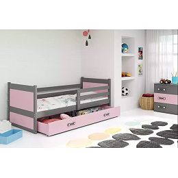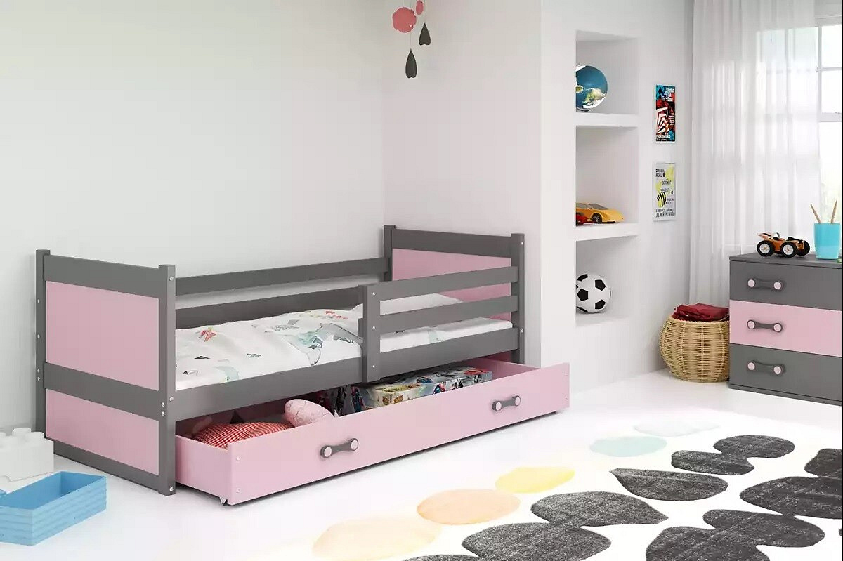 Dětská postel RICO 90x190 cm se šuplíkem, bez matrace, Grafit/Růžová