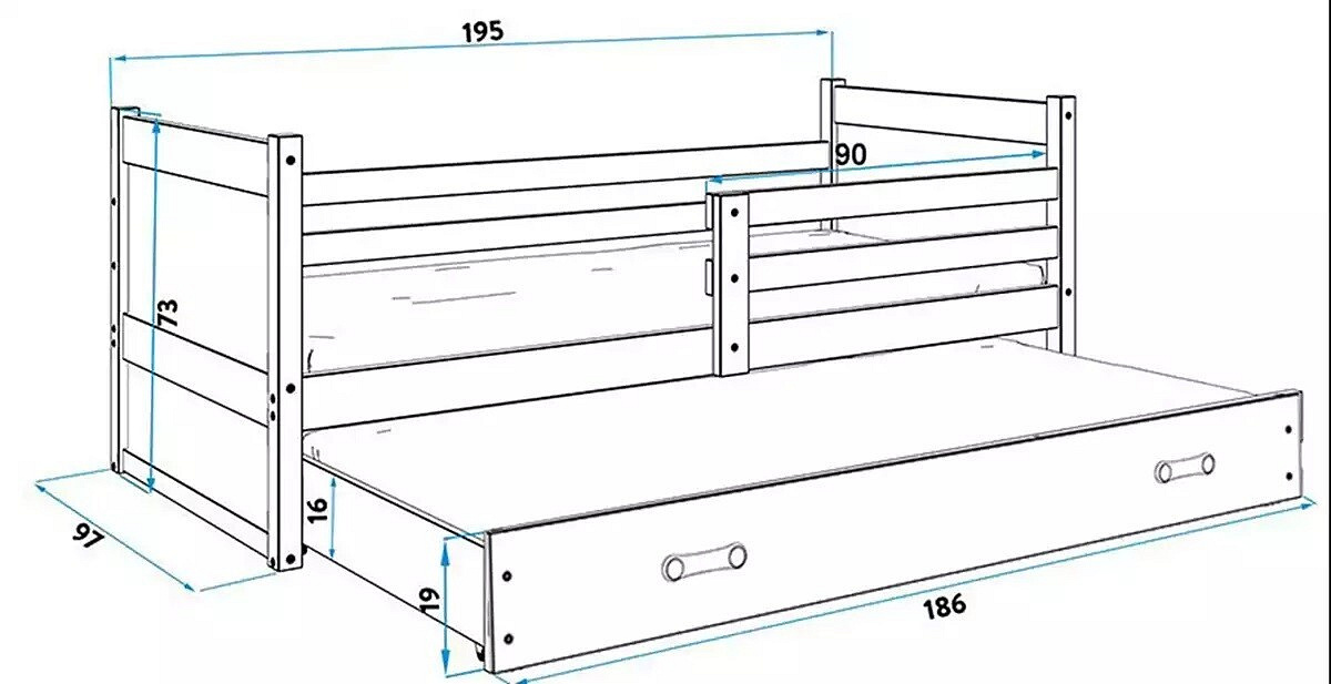 Dětská postel RICO Grafit/Bílá, s přistýlkou 90x190 cm, bez matrace