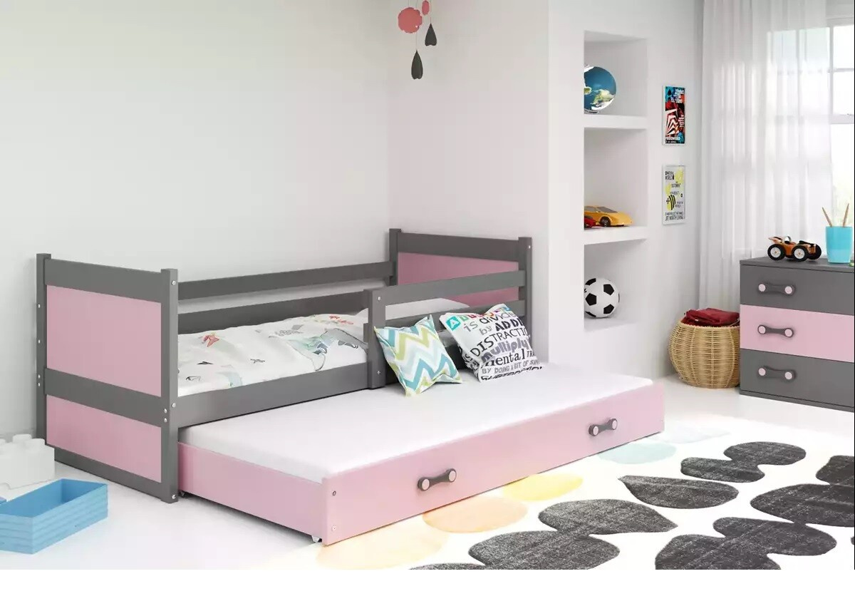 Dětská postel RICO Grafit/Růžová, s přistýlkou 90x200 cm, bez matrace