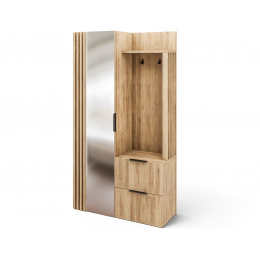 Riganni předsíňová skříň je kompaktní, ale vysoce funkční úložné řešení pro vstupní prostory, měřící 100 × 180 × 36 cm a navržená tak, aby se vešla i do úzkých chodeb. Kombinuje zrcadlovou část šatníku, otevřenou niku s háčky, závěsnou tyč na svrchní oděvy a praktické každodenní úložné prostory. Jednotka je vyrobena z odolné 16 mm dřevotřísky (korpus, police a čela) zakončené robustními PVC hranami, zatímco zadní/vnitřní panely jsou také z dřevotřísky (kapak), což zajišťuje stabilitu a čistý, jednotný vzhled. Uvnitř se nacházejí 3 police s nosností až 20 kg každá a 2 prostorné zásuvky s nosností až 10 kg každá—ideální pro doplňky, boty a drobné předměty. Kovové úchyty na nábytek dodávají moderní nádech a zajišťují pohodlné používání. Riganni je vynikající volbou, pokud hledáte předsíňovou skříň se zrcadlem, policemi, zásuvkami a věšákem na kabáty, která udrží vaši vstupní oblast čistou a uspořádanou.