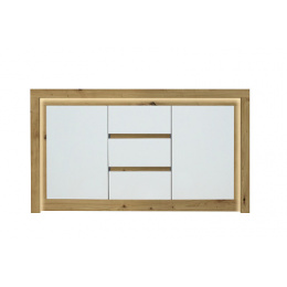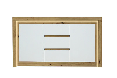 RIMINI II NEW komoda 2D3SM lamino Ořech salev / bílá lesk včetně LED osvětlení (Romeo- kom 2D3SM - 4 BALÍKY) (U) (K150)