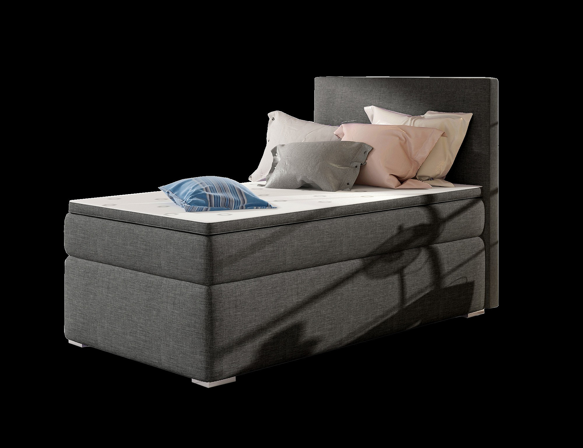 Rocco je skromná, ale vkusná jednolůžková kontinentální postel s pružinovou matrací, která je známá svou funkčností a maximálním pohodlím. Nábytek s plochou na spaní o rozměrech 90 x 200 cm je vybaven 20 cm vysokou bonellovou matrací, která je zpevněna dvěma dalšími vrstvami pěny T25, umístěnými na horní a spodní straně matrace. Kromě toho si zaslouží uznání také topper vyrobený z pěny T21 o tloušťce 4 cm. Mezi charakteristické rysy tohoto modelu můžeme zahrnout: prostorný úložný prostor na lůžkoviny rozdělený na tři části, vysoké opěradlo, elegantní kovové nohy a možnost výběru čalounění z dostupné široké škály barev.