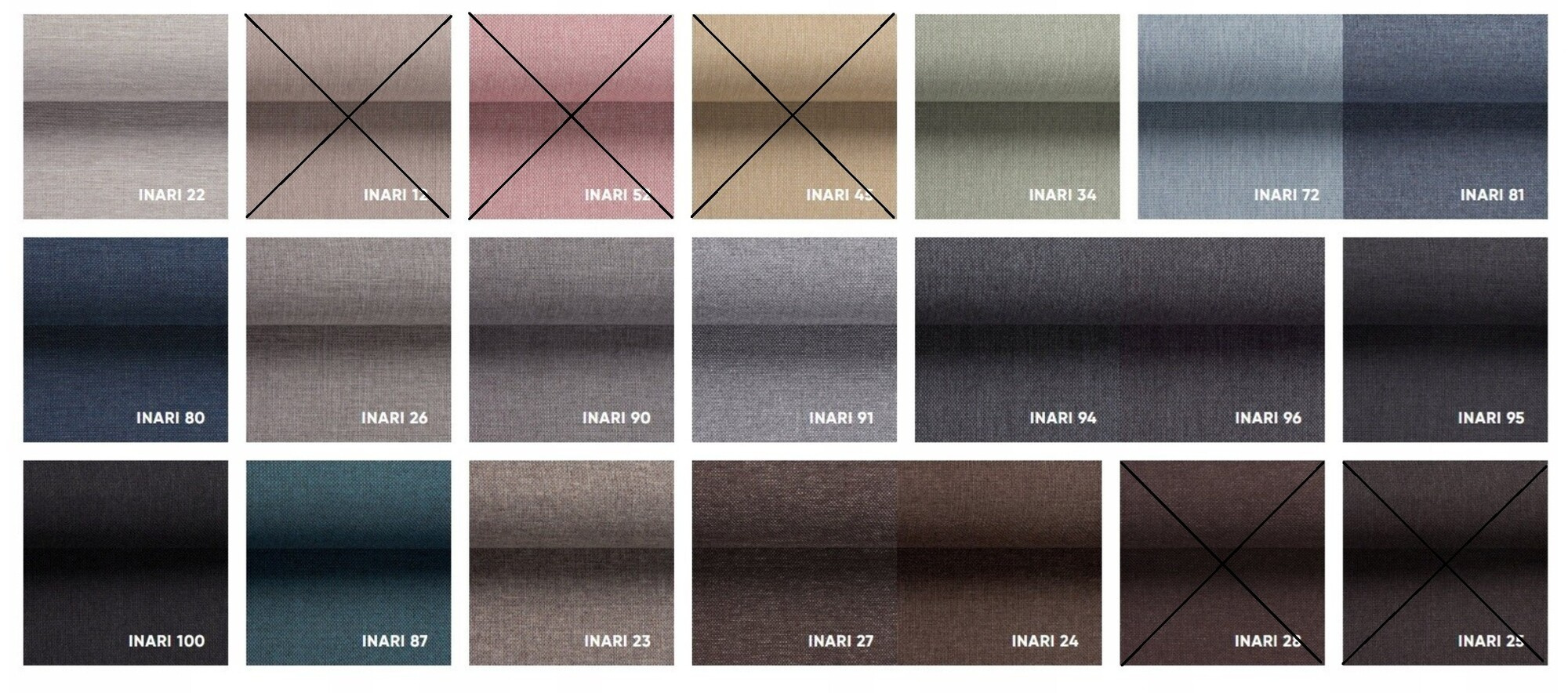 Tkanina INARI - strukturovaná nábytková tkanina, surová, mírně drsná na dotek, imitující přírodní len, středně silná. Čalounická tkanina s jednoduchým a pevným tkaním z ní činí ideální látku pro každodenní použití, velmi dobře se uplatní v jídelně. Je odolná proti oděru a vydrží mnoho let, což je pro tkané látky charakteristické. Má vysokou odolnost proti vyblednutí.