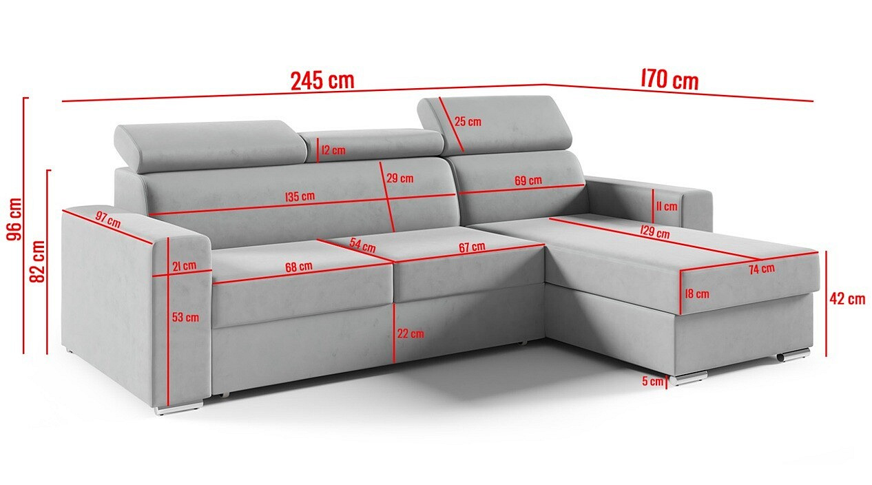 Rohová sedací souprava ADELKA je dostupná v pravé i levé verzi, což vám umožňuje přizpůsobit ji přesně podle dispozic vašeho interiéru. S rozměry 245 x 170 cm a maximální nosností 300 kg je ideální volbou pro rodiny i jednotlivce, kteří hledají prostorné a odolné řešení.