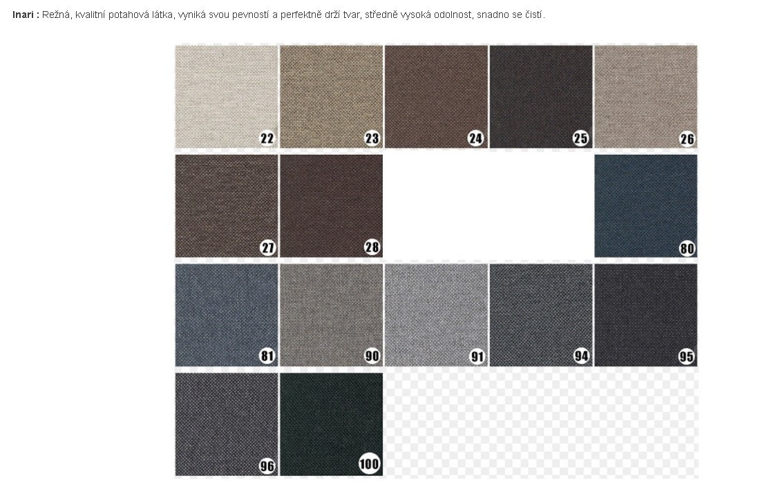 Zboží je dodáváno bez doplňků a dekorací (např. textilních doplňků, spotřebičů, baterie, matrací atd.), nejsou tedy v ceně. Většinou je zboží dodáváno v demontovaném stavu, dle charakteru zboží. Fotografie mohou být i ilustrační a barva produktu nemusí odpovídat skutečnosti vlivem nastavení monitoru a převodem do el. podoby. V případě nejasností kontaktujte naše klientské centrum pegas@nabytek-pegas.cz či volejte 777244446.