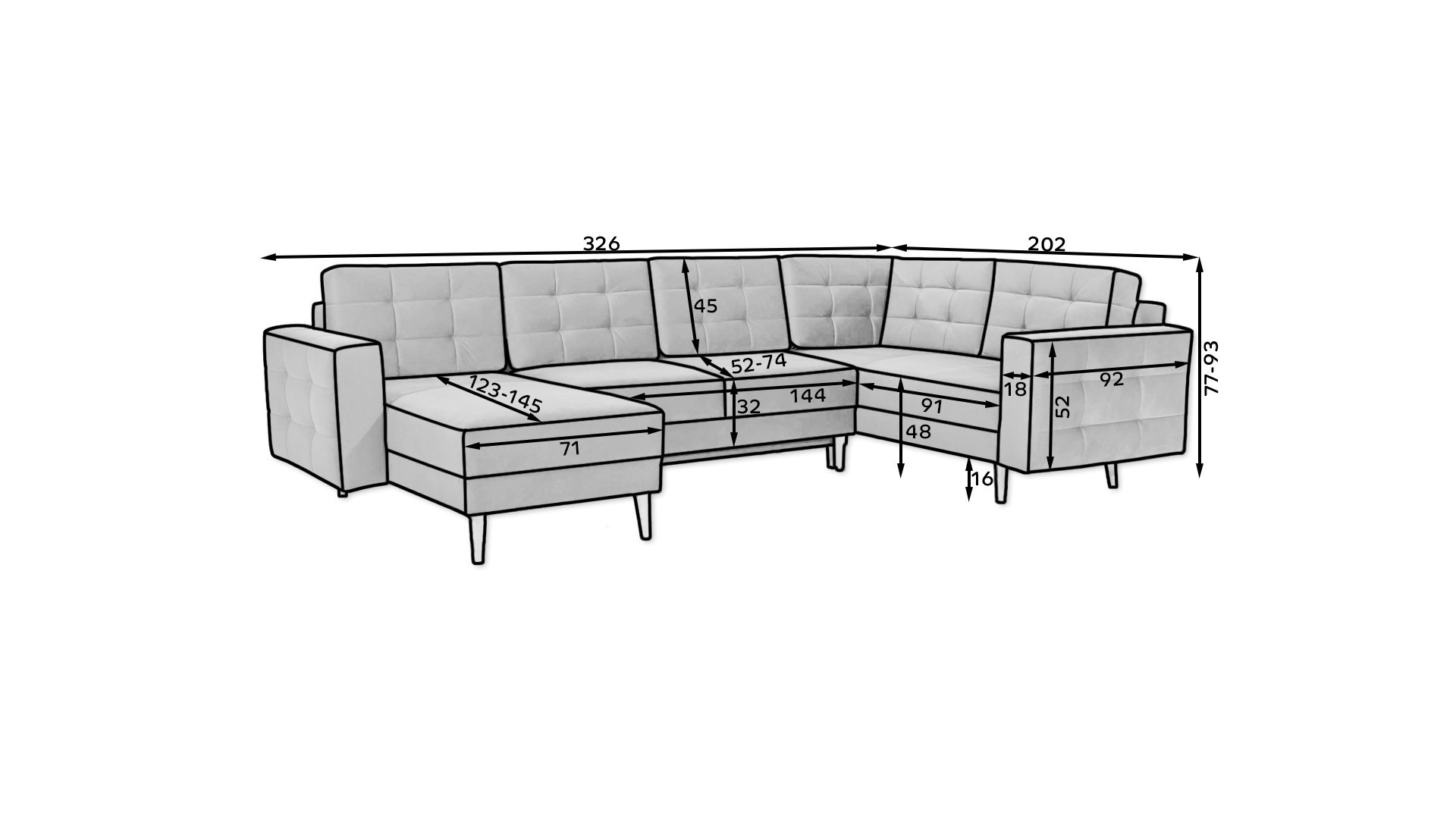 Rohová sedací souprava Asgard U je vyrobena z kvalitních materiálů. Konstrukce sedací soupravy je vyrobena z kombinace dřeva a dřevotřísky. Sedací část je vyrobena v kombinaci polyuretanové pěny T3030, polyuretanové pěny T2140 a bonelů Faliste. Sedací souprava je rozkládací pomocí automatu DL. Sedací souprava má prostorný úložný prostor pro úschovu lůžkovin.