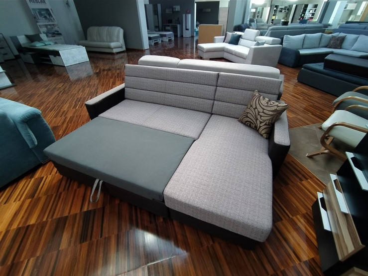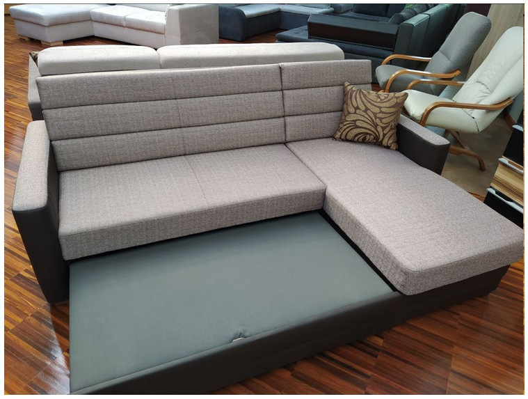 COCO je elegantní a pohodlná rohová sedačka. Je rozkládací s úložným prostorem. Komfort při sezení je zajištěn použitím vlnitých pružin.