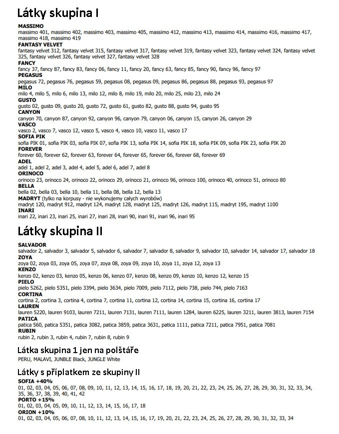 Při objednání sedací soupravy lze vratku vzorníků realizovat s odečtením zálohy při dodání zboží.