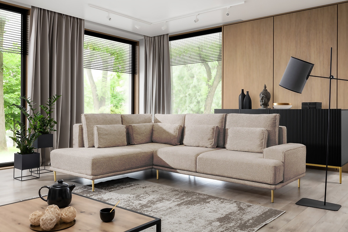 Rohová sedací souprava do obývacího pokoje Nicole L levá - béžová Crown 2 Béžová/zlaté nožky