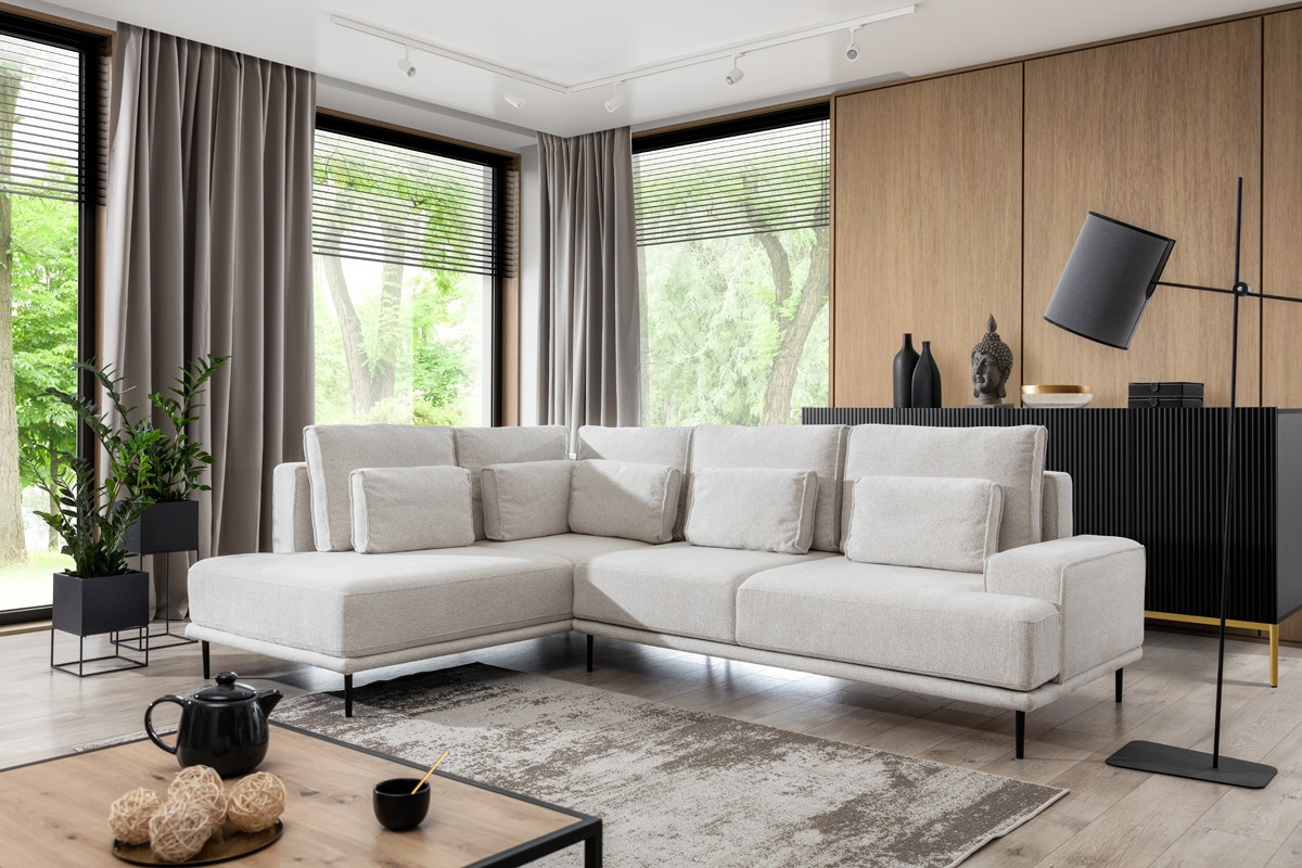 Rohová sedačka do obývacího pokoje Nicole L levá - krémová Raven 22/černé nožky