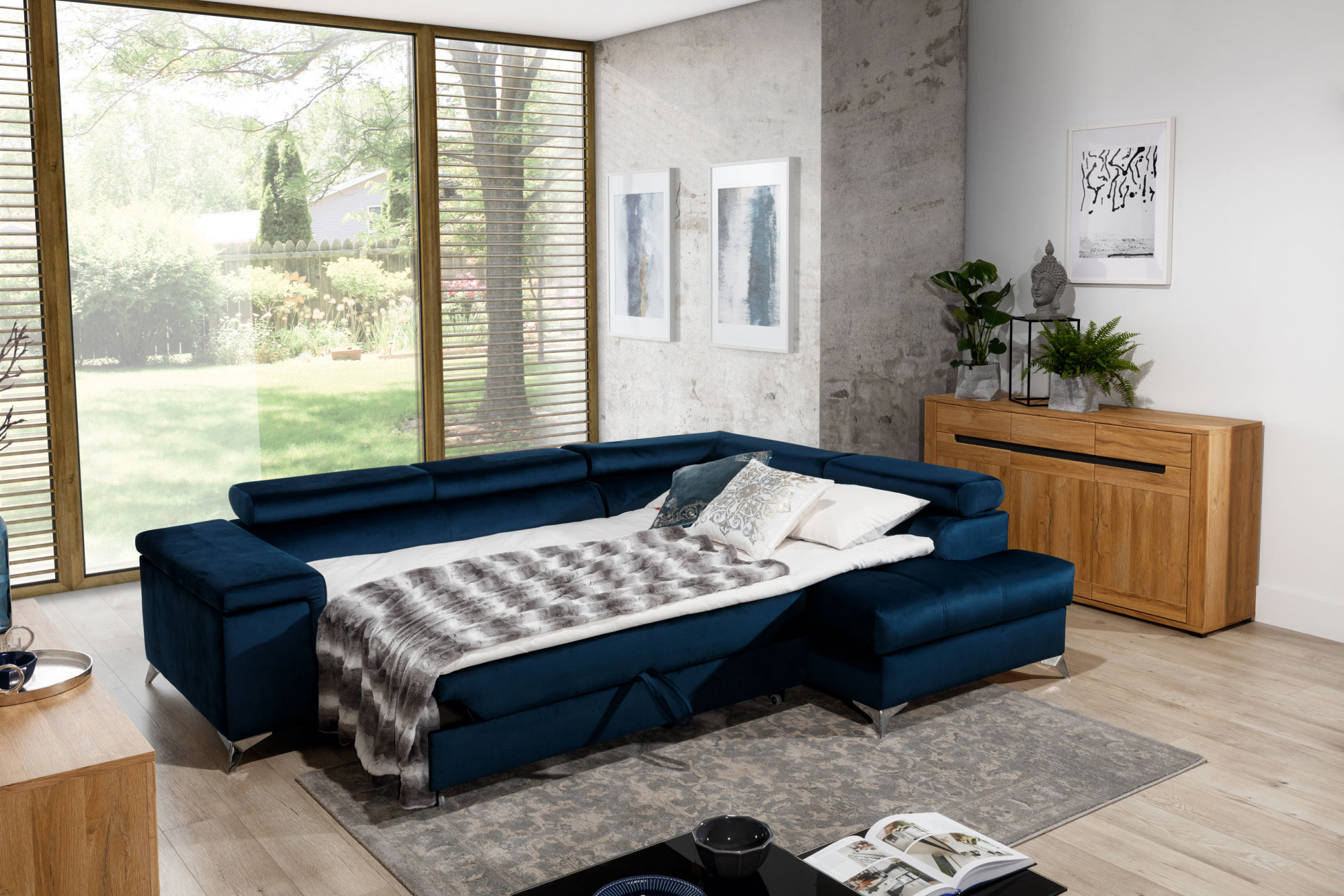 Sedací soupravu lze rozložit a vytvořit tak spací plochu o rozměrech 125x193 cm.
