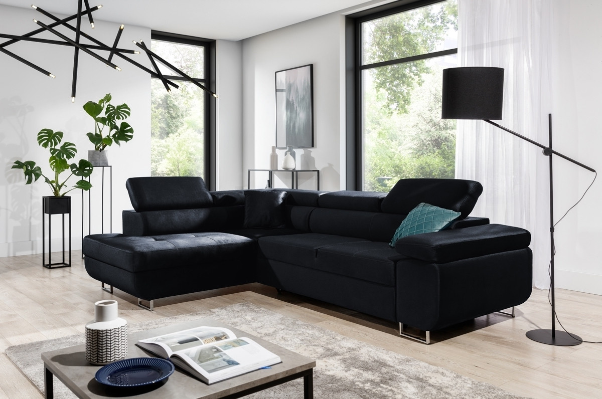 Rohová sedací souprava levá strana s funkcí spaní Annabelle - Černý Solar 99
