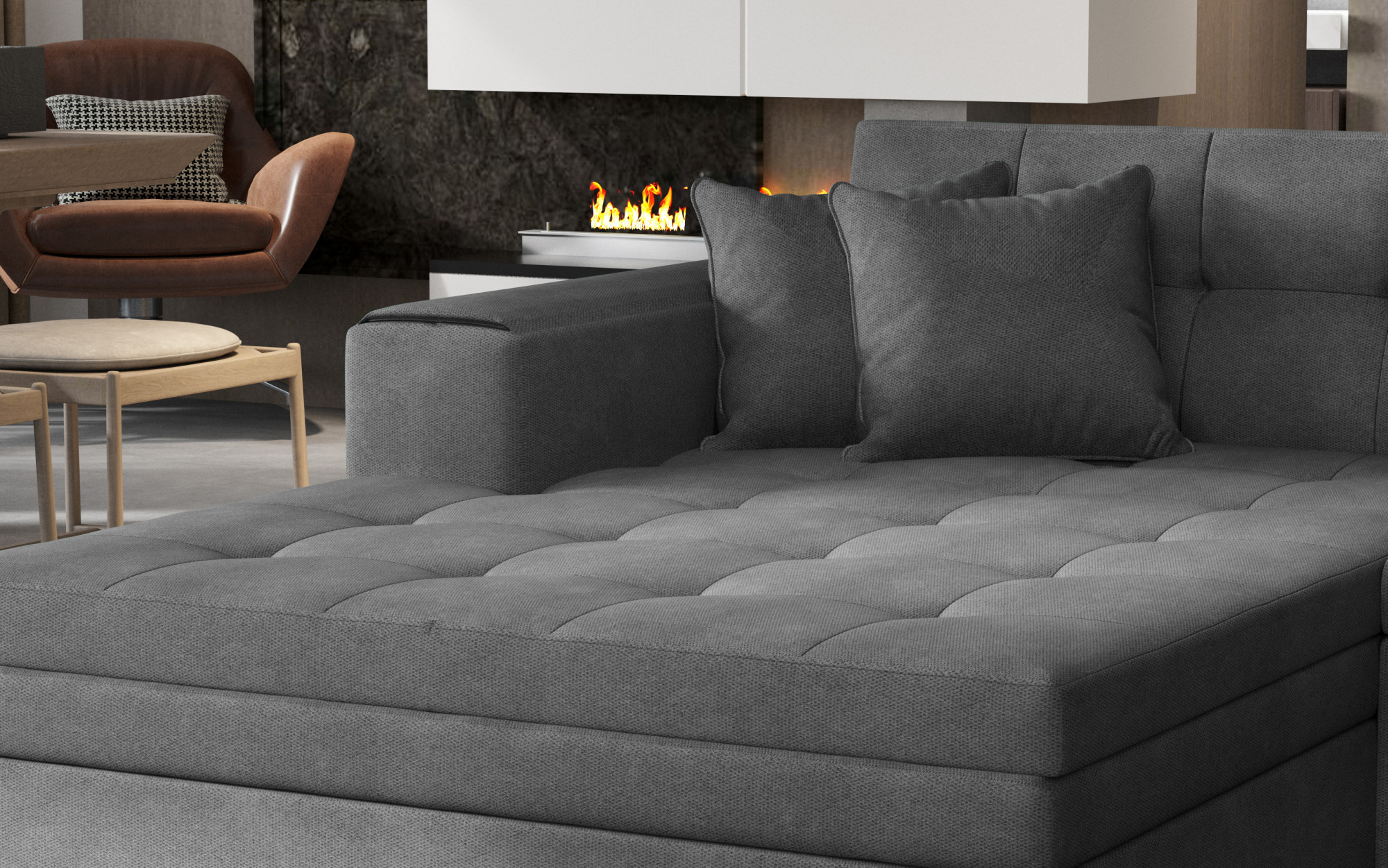 - možnost ustavení sedací soupravy do prostoru - záda sedací soupravy jsou očalouněny stejnou potahovou látkou