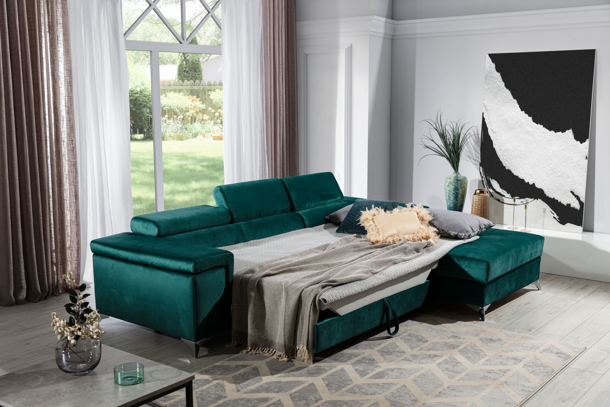 - rozkládací sedací souprava s mechanismem typu Delfín