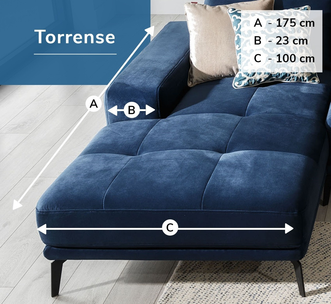 Rohová sedací souprava Torrense je vyrobena z kvalitních materiálů. Konstrukce sedací soupravy je vyrobena z kombinace dřeva a dřevotřísky. Sedací část je vyrobena v kombinaci HR pěny a bonelů. Sedací souprava není rozkládací. Pomocí taburetu můžete vytvořit plochu na spaní 215 x 140 cm.