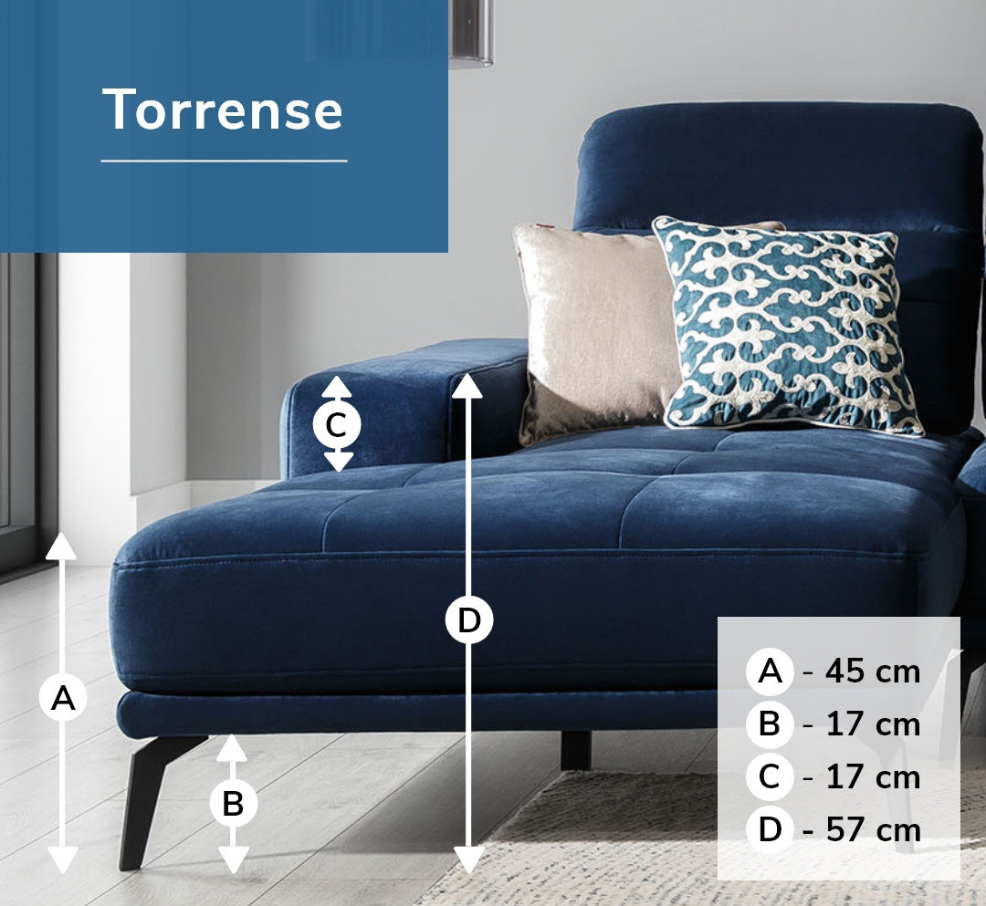 Rohová sedací souprava Torrense je vyrobena z kvalitních materiálů. Konstrukce sedací soupravy je vyrobena z kombinace dřeva a dřevotřísky. Sedací část je vyrobena v kombinaci HR pěny a bonelů. Sedací souprava není rozkládací. Pomocí taburetu můžete vytvořit plochu na spaní 215 x 140 cm.
