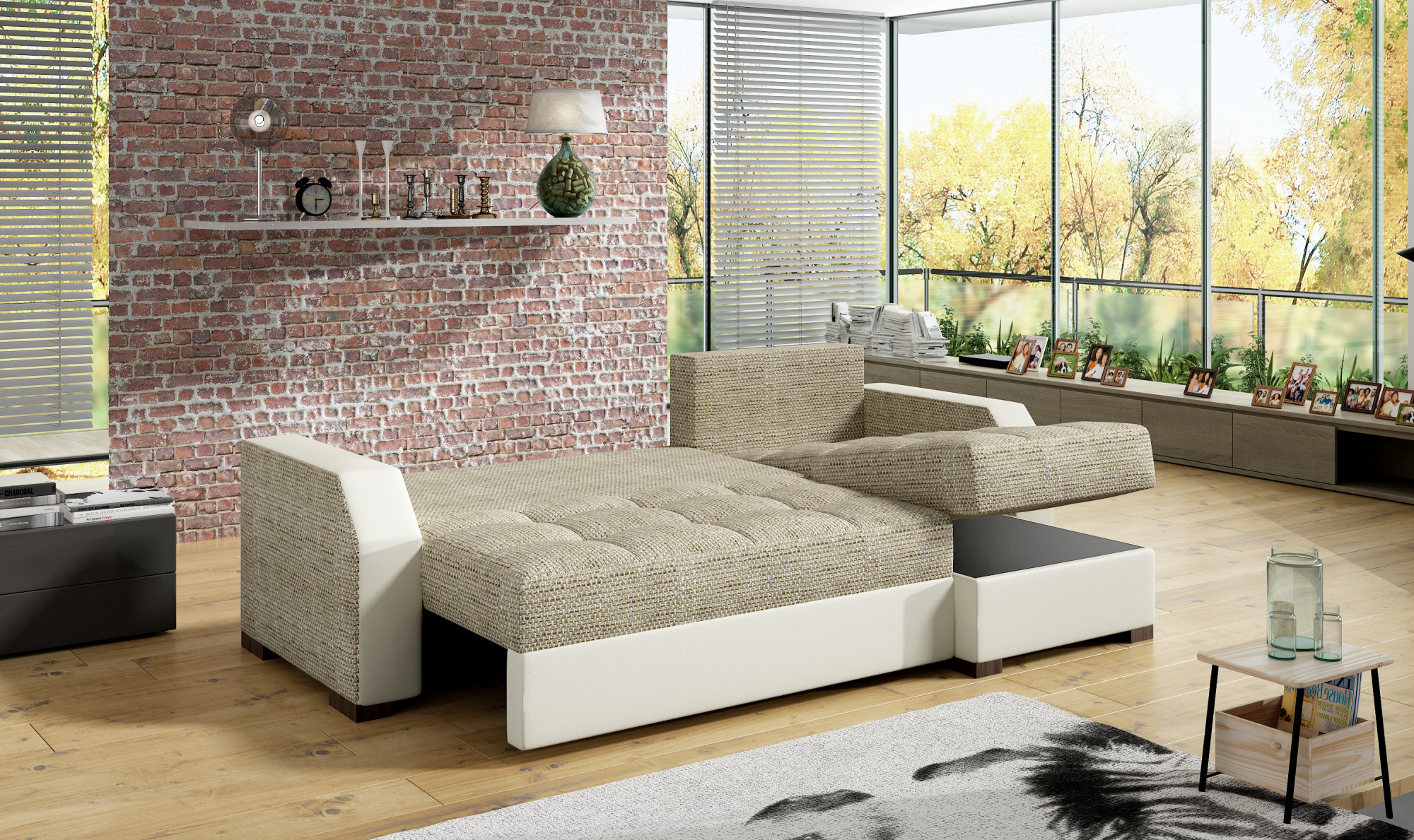 Sedací soupravu lze rozložit a vytvořit tak spací plochu o rozměrech 125x195 cm.