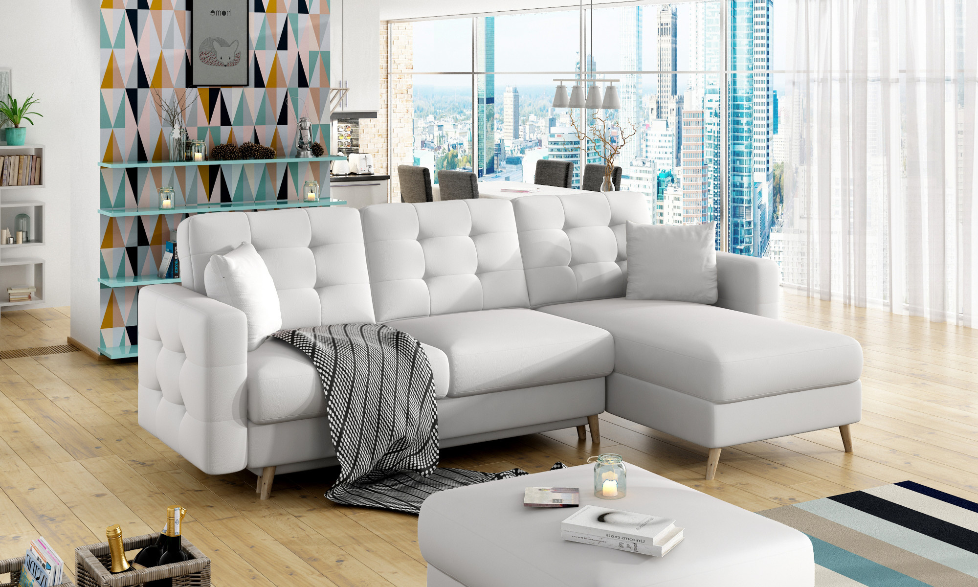 Rohová sedací souprava ASGARD L je UNIVERSÁLNÍ - stranu rohu si můžete měnit podle Vašeho přání. Sedací souprava je vyrobena z kvalitních materiálů. Konstrukce sedací soupravy je vyrobena z kombinace dřeva a lamina. Sedací část je vyrobena z polyuretanové pěny T3040 a pružin, opěrná část je vyrobena z polyuretanové pěny T2542. Sedací souprava má úložný prostor pro úschovu lůžkovin.