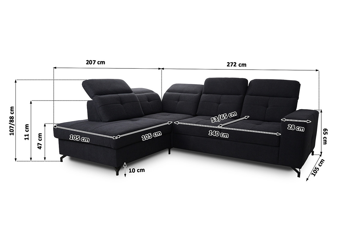 Rohová sedací souprava z funkcí spaní Belavio L Levá - šedý potahová látka Monolith 84, šířka: 272, výška: 88/107, hloubka: 207. Narożnik Belavio jest nowoczesną propozycją z funkcją spania oraz regulowaną głębokością siedziska. Ponadto Narożnik Belavio rozkłada się do spania oraz posiada obszerny pojemnik na pościel.