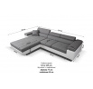Rohová sedačka má funkci spaní a úložný prostor na lůžkoviny. Nohy v rohu jsou chromované. Rohová sedačka má 3 nastavitelné opěrky hlavy, ozdobné prošívání a knoflíky na sedáku. Byl vyroben na vlnitých pružinách + vysoce elastická pěna typ T30. Lze objednat libovolnou stranu rohové sedačky. Stranu rohové sedačky vybíráme při pohledu zepředu na fotografii. ROZMĚRY: šířka: 307 cm výška: 90 cm hloubka: 202 cm plocha na spaní: 125 cm x 200 cm Všechny rozměry jsou uváděny s tolerancí +/- 3 cm.