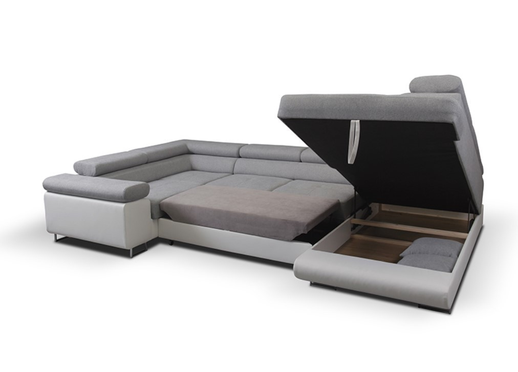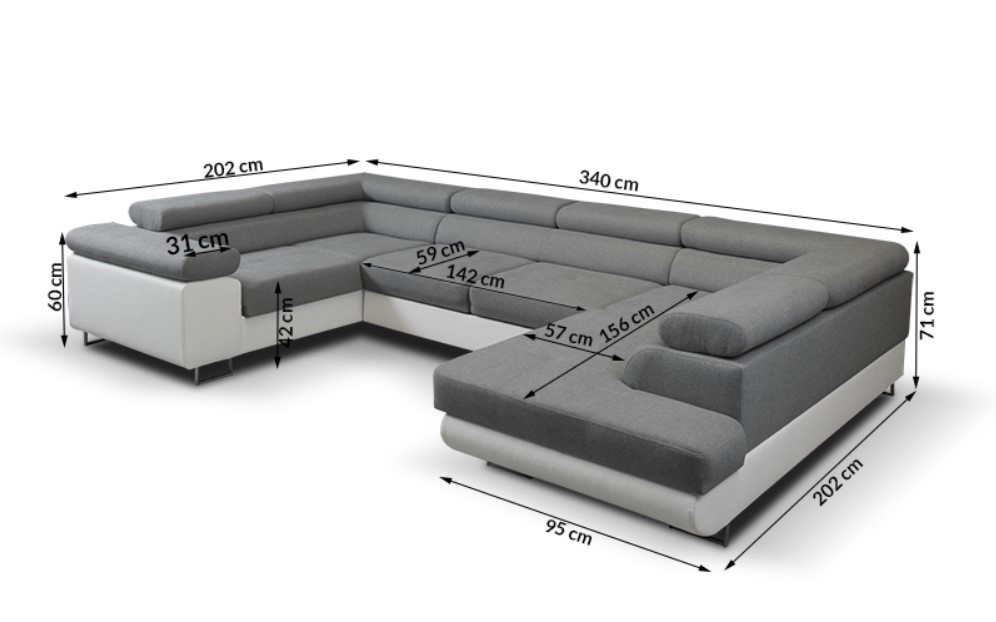 Rohová sedačka má funkci spaní a úložný prostor na lůžkoviny. Nohy v rohu jsou chromované. Rohová sedačka má 4 nastavitelné opěrky hlavy, ozdobné prošívání a knoflíky na sedáku. Byl vyroben na vlnitých pružinách + vysoce elastická pěna typ T30. Lze objednat libovolnou stranu rohové sedačky. Stranu rohové sedačky vybíráme při pohledu zepředu na fotografii. ROZMĚRY: šířka: 340 cm výška: 90 cm hloubka: 202 cm x 202 cm plocha na spaní: 125 cm x 250 cm Všechny rozměry jsou uváděny s tolerancí +/- 3 cm.