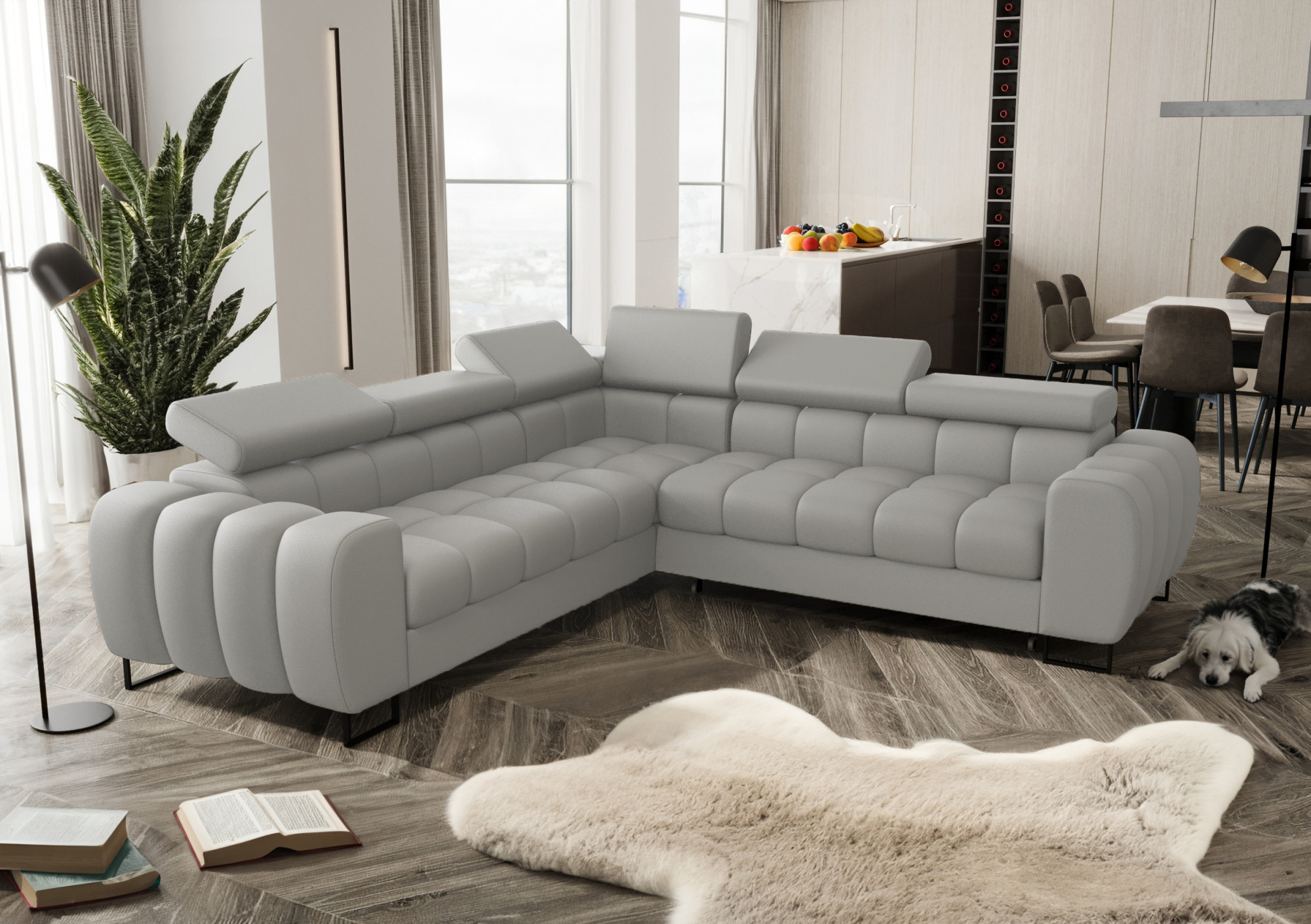 Rohová sedací souprava ASPEN MAX 260x260 cm přírodní kůže šedá - rychlé dodání