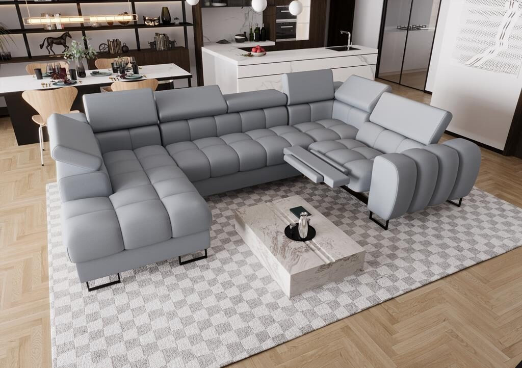 Rohová sedací souprava ASPEN MAX II , relax 198x350x170 cm přírodní kůže - šedá kůže , pravá