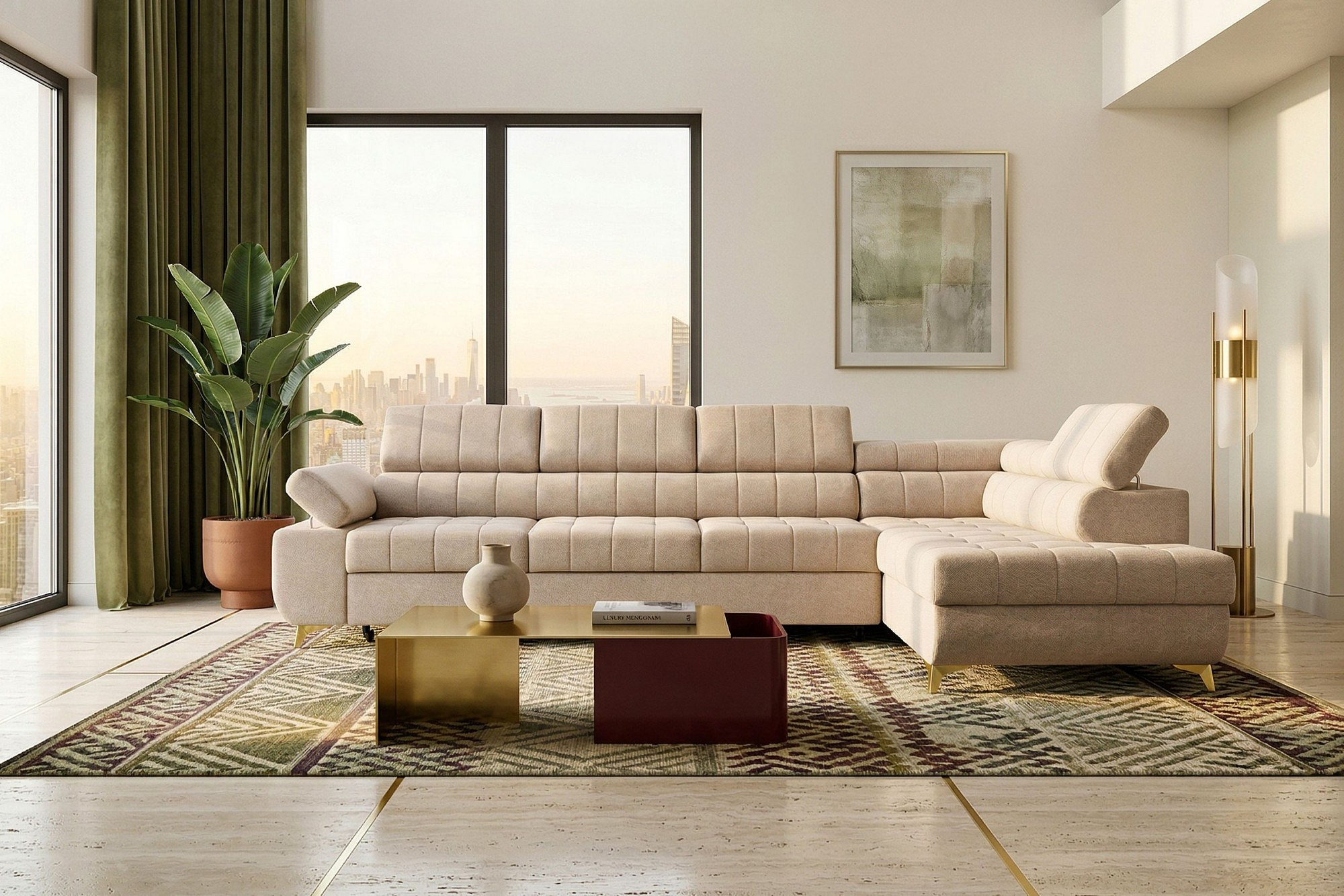 Rohová sedačka Dragonis Maxi s funkcí spaní / zlaté nohy