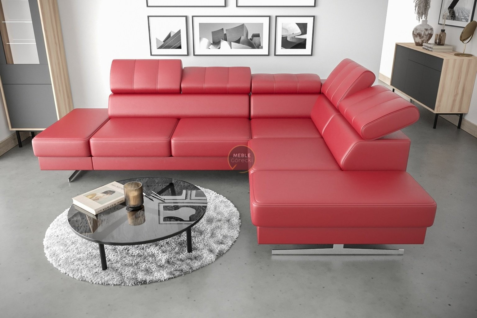 Rohová sedací souprava EMPORIO 225x300 přírodní kůže - červená kůže , pravá